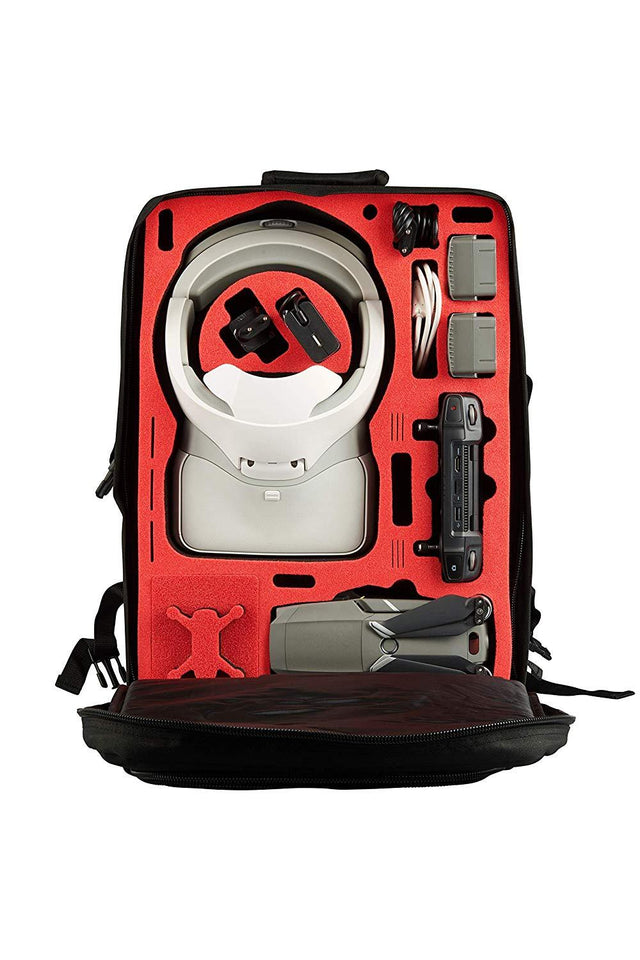 Mehr Komfort und Sicherheit: Unser neu entwickelter Rucksack bietet Ihnen die Möglichkeit, sowohl die DJI Mavic 2 Pro/Zoom als auch die DJI Goggles (inkl. der Racing Edition) sicher zu transportieren. Ein großer Vorteil ist, dass die Videobrille im Einsatz montiert werden kann. Der leere Rucksack selbst ist mit zusätzlichem Schaumstoff an der Vorder- und Rückseite versehen, sodass der Inhalt rundum geschützt ist. Das Regencape bietet zusätzlichen Schutz vor witterungsbedingten Einflüssen. Mit dieser Version können Sie entweder die DJI Standard Remote Control oder die neue DJI Smart Remote Control sicher verstauen. Darüber hinaus haben Sie die Möglichkeit, bis zu 5 Akkus für die DJI Mavic 2 zu transportieren: 2 Akkus im Einsatz, 2 weitere im herausnehmbaren Akkublock in unserem beliebten Multifunktionsfach mit Deckel und einen Akku, der sich bereits in der Drohne befindet. Dieses Produkt wurde von erfahrenen und langjährigen Copter-Piloten und Inhabern von Pilotenlizenzen verschiedener Klassen sowie kompetenten Konstruktionsingenieuren und CAD-Experten entwickelt und konstruiert. Ein Produkt „Made in Germany“ – hergestellt in Deutschland unter Berücksichtigung strenger Vorschriften für die Schaumstoffverarbeitungsindustrie. Im Rucksack finden folgende Teile Platz: DJI Mavic Pro 2 inkl. Akku, Propeller und Gimbal Cover.