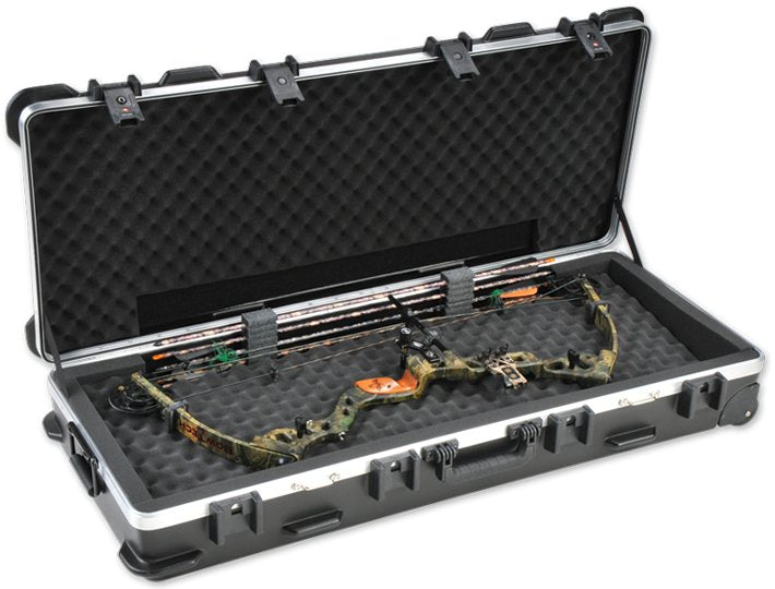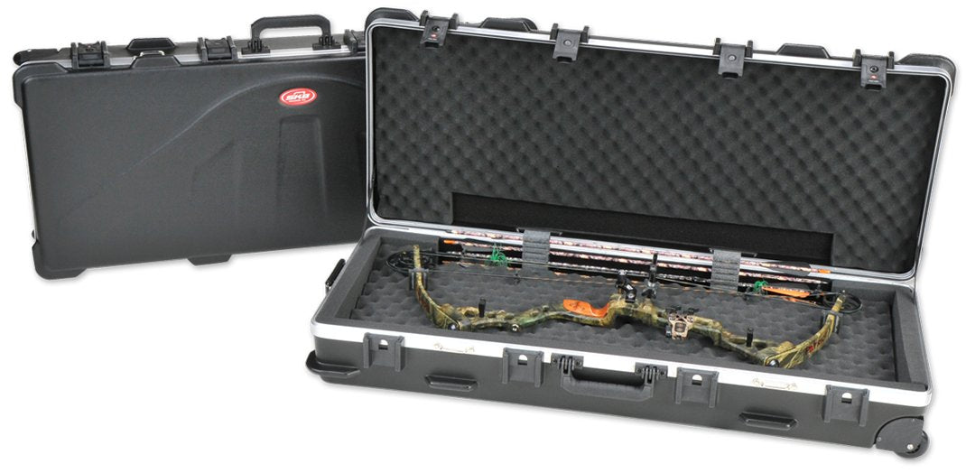Der SKB Case Compound 4114A Parallel ist für zwei parallele Wurfarme oder Bogen-/Gewehrkombinationen konzipiert. Der Bogenkoffer ist flugtauglich (ATA 300). Er verfügt über robuste, vor Ort austauschbare Verriegelungsriegel und leise laufende Hochleistungsräder. Der Bogenkoffer verfügt außerdem über einen gefederten Endgriff und einen eingegossenen Stoßfängerschutz. Es gibt sichere Befestigungsschlaufen für den ATV-Transport.