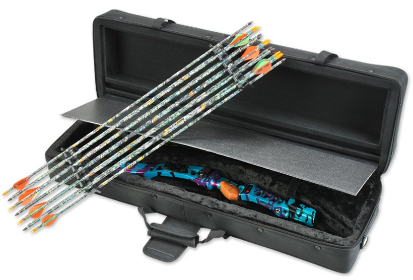 Der Hybrid 3410 Recurvebogenkoffer verfügt über einen speziellen Schaumstoffeinsatz für die gängigsten zerlegbaren Recurvebogen und einen Wurfarmsatz. Die Außenseite besteht aus robustem, wetterbeständigem 600-Denier-Ballistiknylon und verfügt über zwei Zubehörtaschen.