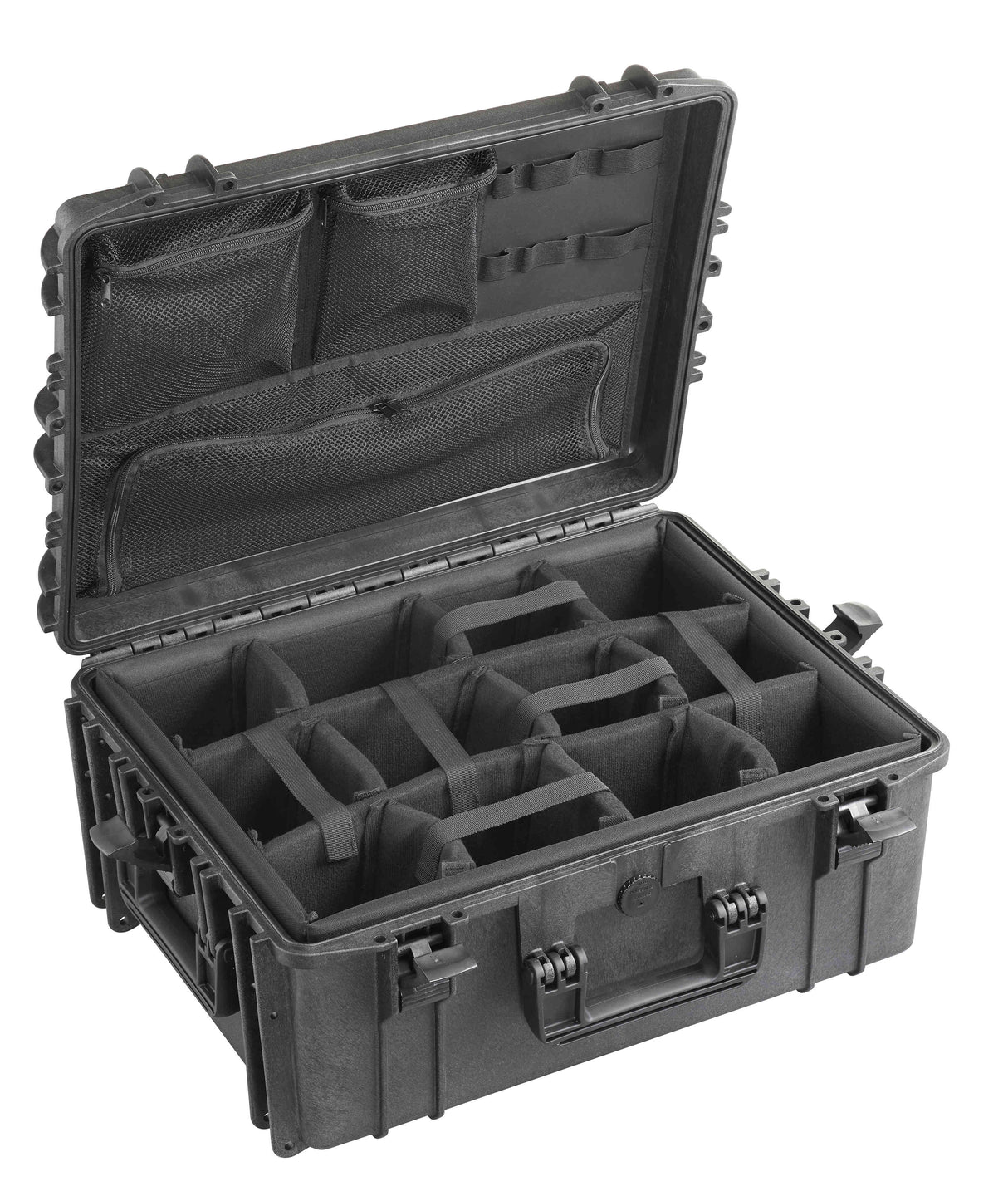 Dieser TAF CASE Fotokoffer mit Trolleyfunktion ist ideal für Outdoor Fotografen und auf Reisen. Der Koffer aus hochwertigem Kunststoff ist die wasserdichte Alternative zu Fototasche und -rucksack. Selbst beim Transport im Flugzeug ist die Kamera samt Ausrüstung vor Beschädigung geschützt. Ein automatisches Druckausgleichventil wirkt Temperatur- und Druckunterschieden entgegen. Das Innere des Kamerakoffers ist mit unserem Kamera Inlay ausgelegt. Dieses lässt sich leicht individuell anpassen. Im Deckel befindet sich ein formstabilder Organizer für weiteres Zubehör. Zusätzlich verfügt der Fotokoffer über einen praktischen Klapphandgriff, der selbst mit Handschuhen problemlos gegriffen werden kann.