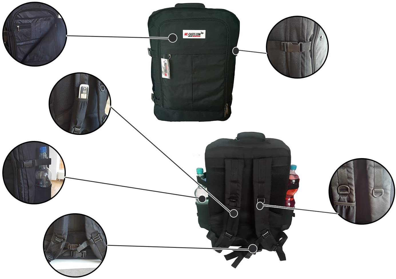 - Beim Design des Rucksacks haben wir uns darauf konzentriert, dies so gut wie möglich umzusetzen. Sie verfügen über ein verschließbares Mehrzweckfach zum Verstauen von Kleinteilen wie Speicherkarten, LED-Leuchten, Filtern etc. Der Rucksack wird mit einem Regencape geliefert, um die Ausrüstung vor Regenschauern oder Schnee zu schützen. Er verfügt über Seitenfächer für Flaschen. Geeignet für alle großen Fluggesellschaften und perfekt für kleinere Handgepäckanforderungen von Fluggesellschaften wie Wizz Air, Wow Air und United Airlines Basic Economy.
