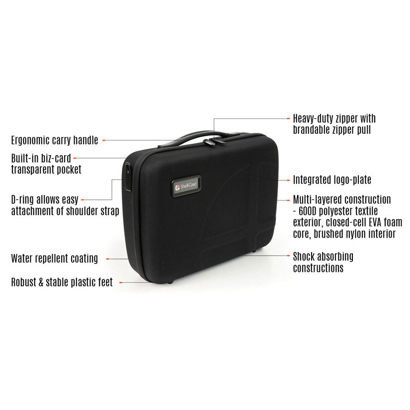 Shell Cases sind Tragekoffer mit „weicher Schale“, die sowohl ein einzigartiges Aussehen als auch ein hervorragendes Maß an Benutzerfreundlichkeit bieten. Es sind schlanke, elegante, leichte Koffer, die für ergonomischen Komfort konzipiert sind und fortschrittliches Design und höchste Qualität bieten. Diese halbstarren Koffer bieten eine professionelle und schützende Lösung mit modularen internen Organisationsoptionen sowie mehrere Branding-Optionen zur Widerspiegelung der Unternehmensidentität.