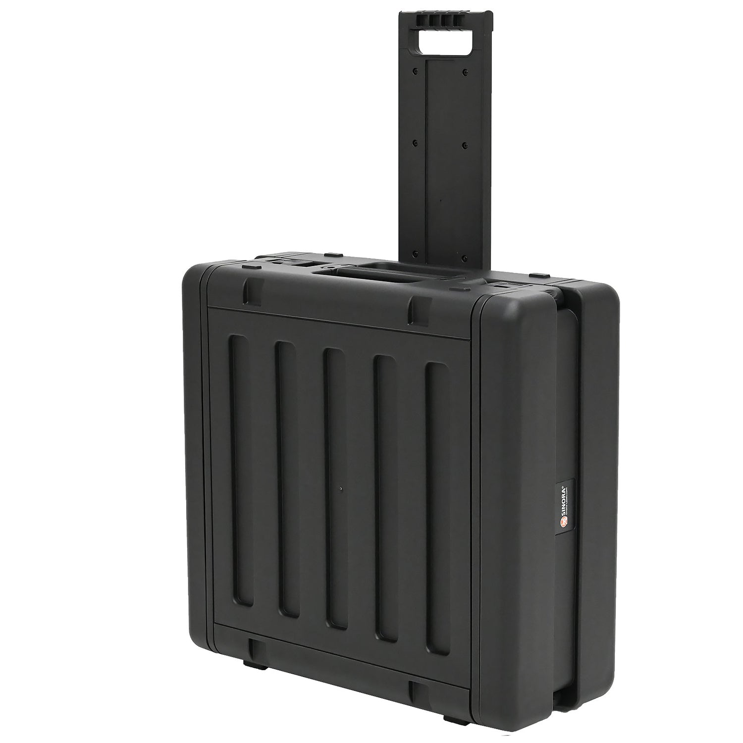 Die SINORA 19-Zoll-Racks aus stoßfestem PP-Kunststoff sind die ideale Lösung für den Transport von 19-Zoll-Geräten in verschiedenen Branchen wie Broadcast, IT, Audio, Messtechnik und vieles mehr. Ihre Stabilität und Leichtigkeit verdanken sie einem innovativen Design und einer hochwertigen Herstellung in Spritzgusstechnik, was für präzise Passgenauigkeit sorgt. Alle Racks verfügen über Stahlrackschienen und werden mit M6 Käfigmuttern geliefert. Dank einer umlaufenden Dichtung im abnehmbaren Kofferdeckel ist Ihr Equipment vor Feuchtigkeit geschützt. Zusätzlich zur Standard-Racktiefe von 458 mm bieten wir auch eine Short-Rack-Serie mit einer Tiefe von 276 mm an, ideal für kompakte Geräte. Unsere Trolley-Racks mit ausziehbarem Griff bietet eine neue Dimension an Sicherheit und Komfort für den Transport Ihrer Ausrüstung.