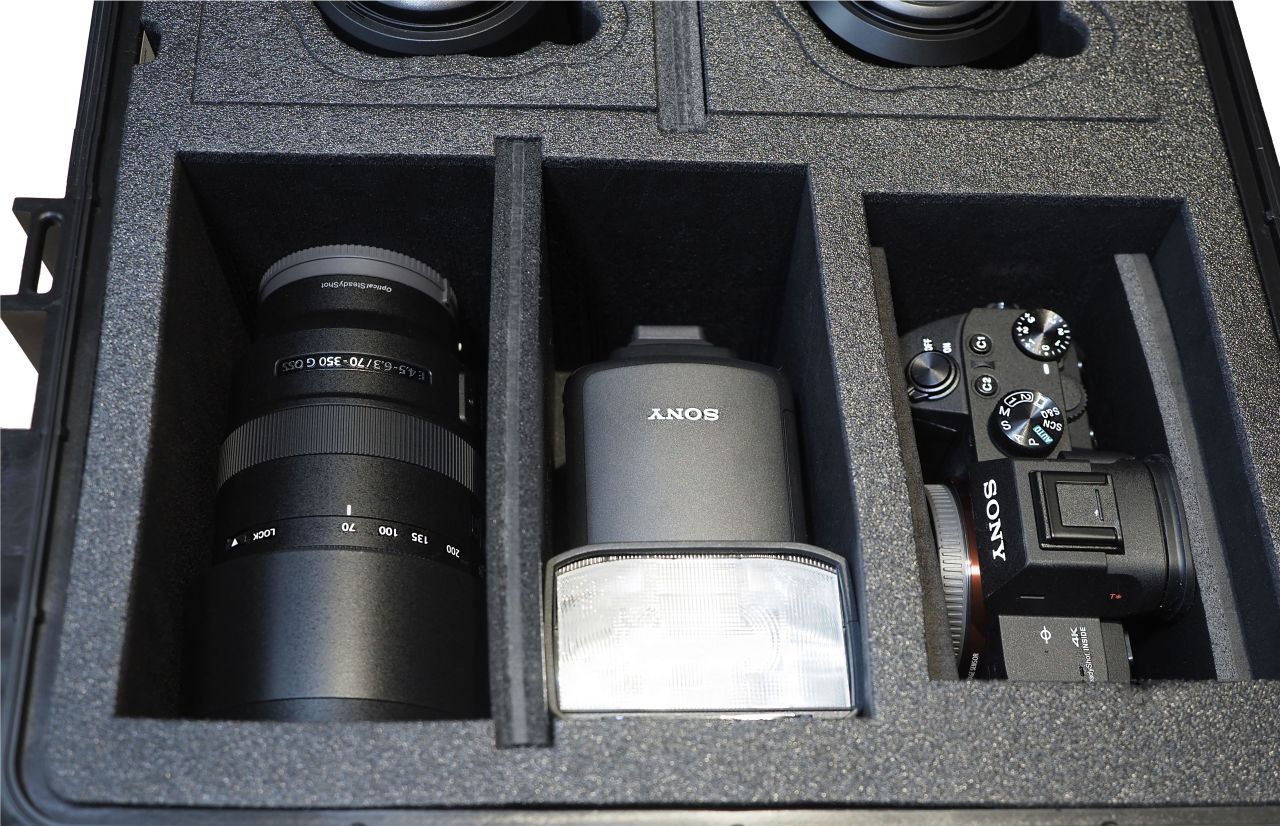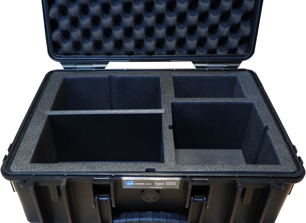 B&W outdoor.case type 5000 – der perfekte Outdoor-Koffer für professionelle Fotografen. Das Inlay aus Hartschaum ist eigens für Foto-Erhardt angefertigt und für Sony Kameras, Zubehör und fast alle gängigen Sony Objektive geeignet. Produktbilder zeigen optionales Zubehör und Anwendungsbeispiele.